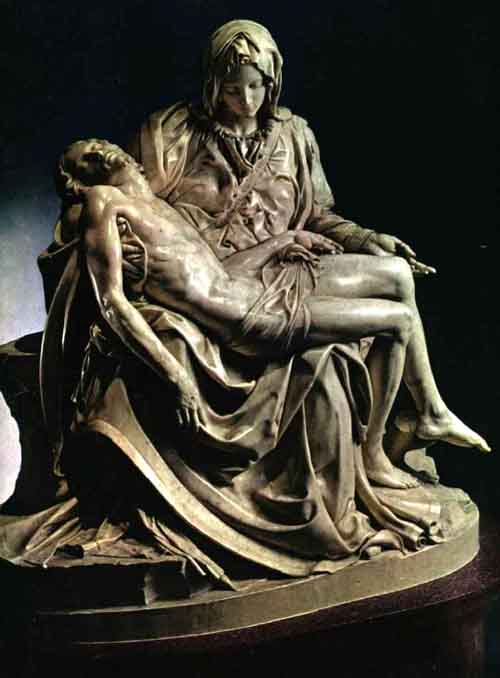 罗伦佐·美第奇死后,米开朗基罗失去了保护人,佛罗伦萨陷于一片混乱,他深感故乡非久留之地,而赴威尼斯和波伦亚,后转道罗马寻找发展机会。罗马到处林立古代雕像,犹如走进巨大的古代艺术宝库。23岁的米开朗基罗受法国红衣主教委托,为圣彼得教堂制作 《哀悼基督》雕像。这件雕像的问世,使米开朗基罗名盖罗马,自多纳太罗之后又一颗雕刻巨星升起。26岁的米开朗基罗载誉回到故乡佛罗伦萨,便立即从事《大卫》云石雕像的制作,三年后完成,安放在韦吉奥宫正门前,作为佛罗伦萨守护神和民主政府的象征。