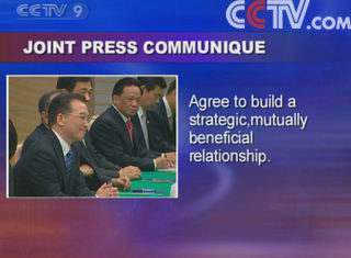 A joint press communique has been released during Premier Wen Jiabao's visit. It shows the Chinese and Japanese leaders have reached consensus on building stronger ties.