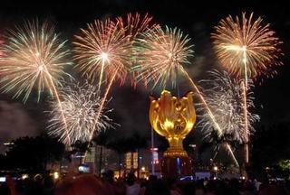 HONG KONG, July 1 (Xinhua) -- A 16 million HK dollar fireworks display to mark the 10th anniversary of Hong Kong's return to the motherland and the establishment of the Hong Kong Special Administrative Region (HKSAR) pushed the city's celebration activities to another climax here Sunday night.