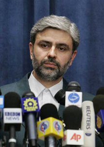 File photo of Iran's Foreign Ministry spokesman Mohammad Ali Hosseini speaking at a news conference in Tehran, February 12, 2007. Iran on Monday condemned French Foreign Minister Bernard Kouchner's warning that the world should brace for a possible war over the Iranian crisis. (File Photo)