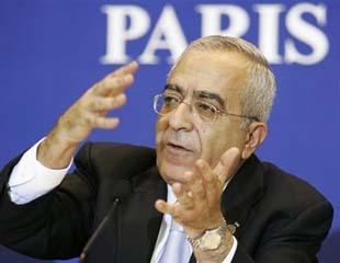 Palestinian Prime Minister Salam Fayyad gestures during the closing press conference at an international donors conference for the Palestinian state, Paris, Monday, Dec. 17, 2007. (AP Photo/Thibault Camus)