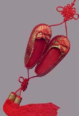 These beautiful Chinese fancy knots, either of a simple or a complicated structure, are made of a single piece of string. They are created by tying, drawing, twining, and weaving and the instruments used include crochet hooks, tweezers, scissors, and lighters. The materials needed are strings of various colors, gum, and small decorations made of porcelain or jade.