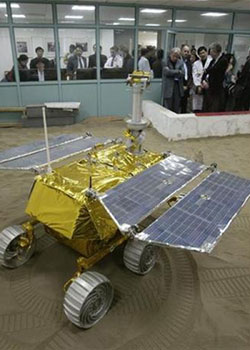 A China-made lunar rover makes its debut during an exchange on space technology between China and the United Kingdom in Shanghai, March 31, 2007. China, the third country to put a man in space, is to build a fourth rocket launchpad on its southern tropical resort island of Hainan, state media said on Monday, an idea first suggested in 1999.