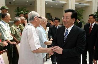 Chinese vice president Zeng Qinghong on Thursday visits retired officials, veteran soldiers, armies, armed police and representatives from all walks of life in Inner Mongolia Autonomous Region, which is celebrating its 60th anniversary. (Xinhua Photo)