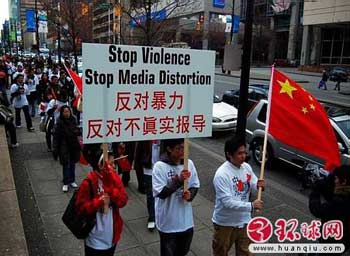 Chinese int'l students in Vancouver rally to oppose violence and media distortion.