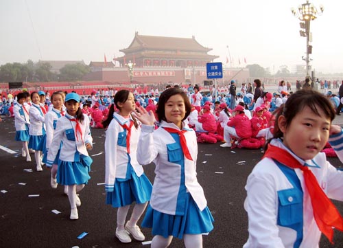 Los estudiantes de escuela primaria que participaran a la ceremonia del Día Nacional