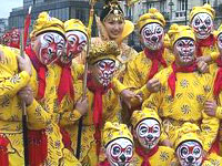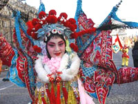 Avec ce coup de gong qui annonce la plus importante fête chinoise, la fête du printemps, Paris était devenue presque chinoise. Le 24 janvier 2004, un défilé exceptionnel, consacré aux célébrations du Nouvel An chinois, a eu lieu sur les Champs-Elysées. Des milliers de participants ont envahi la plus belle avenue du monde. Les dragons, licornes, et personnages de l´Opéra de Pékin ont fasciné les amoureux de la culture chinoise.