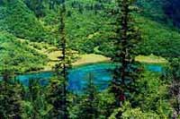 金铃海海拔2435米,一大一小紧相毗连,因形似铜铃而名。俯瞰金铃海,湖水呈靛色,“青出于蓝”分外夺目。湖岸浓荫密布,景色特秀,将一对铜铃似的湖泊映衬得更加玲珑,让人不需打击,已闻清脆。