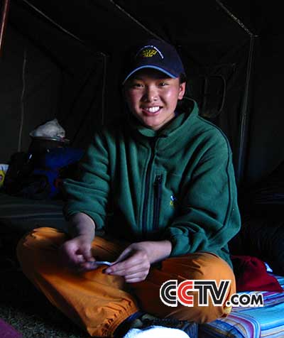 19岁的旺姆每天象一只快乐的百灵鸟,清脆悦耳地的声音不住地问山友们:请问你们有什么要我帮忙的吗?