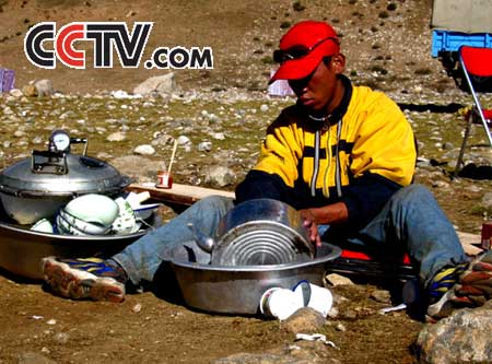 勤快的大厨助理仔细洗擦锅碗瓢盆,准备回家