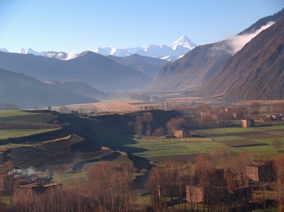 新都桥的清晨,远处是贡嘎雪山.