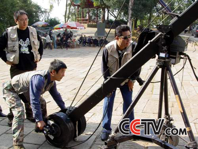 | 总导演亓克君(右一)在外拍现场 |