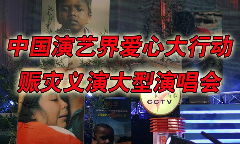 为救助印度洋地震、海啸灾民,中国红十字会与外交部和文化部、民政部、广电总局、北京市人民政府、中国文联、中华慈善总会、中央电视台等九单位主办的印度洋海啸赈灾大型演唱会于2005年1月6日在北京工人体育馆隆重举行。这是一次展示中华民族博爱、奉献精神的晚会,也是一次中国演艺界的爱心大行动。本场演出的实况录像将在2005年1月14日19:30,CCTV-3《同一首歌》栏目中播出,欢迎收看!
