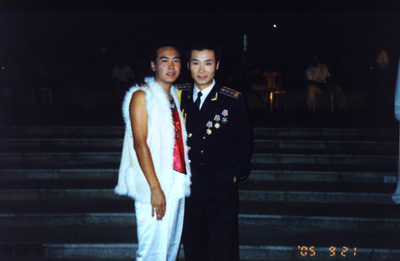 与青年歌唱家刘和刚一起合影
