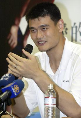 2007年9月8日,中国篮球明星姚明在新竹出席一个体育交流活动。当日,姚明来到台湾新竹,对当地学生进行篮球教学,并与热爱篮球的台湾科技界朋友进行座谈。 新华社发