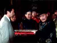 梅玲房间,博雅点燃了红烛,梅玲穿上红衣,头顶红绸,悄悄行了天地之礼。梅玲幸福地依偎在博雅怀里,心里却担心有一天博雅会离