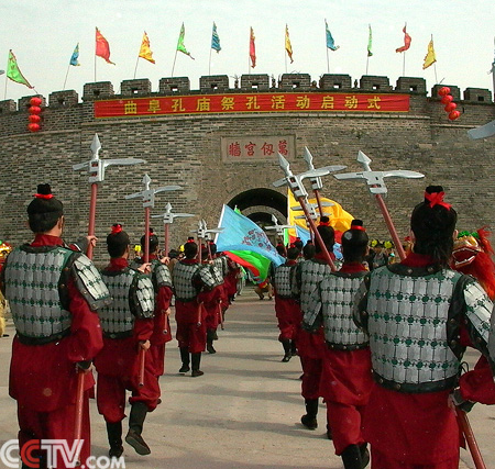 4月20日,曲阜举行了盛大的明故城开城仪式和孔庙祭孔表演,拉开了2005年曲阜旅游节庆活动的大幕,此后,直至十月底,这两大活动将于每周六上午九点在曲阜同时举办,黄金周期间则天天举办。
