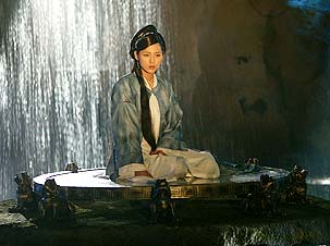 韩国美女朴美宣继《凤求凰》、《汗血宝马》后,再次凭《宝莲灯》中饰演的“三圣母”登上央视八套黄金档。“三圣母”是沉香的母亲,二郎神的妹妹,因私自下凡与刘彦昌结为夫妇,被天庭处罚,压在华山之下。朴美宣气质独特,她扮演的三圣母纯洁、善良,造型当真宛若天仙下凡。 焦恩俊饰二郎神