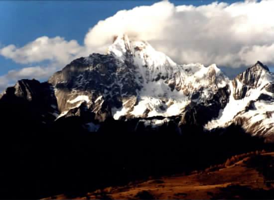虽然我已十余次到过四姑娘山,但无论是作为旅游者、摄影者、登山者,每次从巴郎山下到日隆镇,只要天气好,我都要拍些照片,以资纪念。此次虽是远征稻城路过,我们仍停车猫鼻梁小憩、拍照。