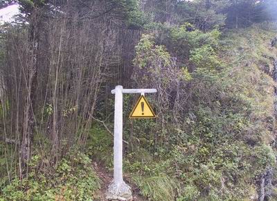 金丝燕垭的下面一条林间小径幽暗而艰险,明显的以小径为界,右侧是茂盛的松柏灌木,而左侧却是干枯的大片箭竹。有人说箭竹是自然死亡的,但此情此景,这泾渭分明的一生一死,是否应该在我们的头脑中留下警醒,不要在将来成为千年的一叹!