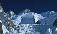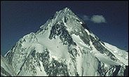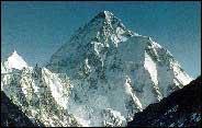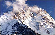 乔戈里峰——8611米 乔戈里峰(Qogir)(8611),又称K2,喀拉昆仑山脉中国新疆和克什米尔地区巴基斯坦实际控制区的界峰,东经76’30’51,北纬35’52’55;1954年意大利登山队首次登顶. |