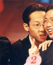 墨尔本大学代表队的教练堪称本届辩论赛最有激情的教练。队员们在舞台上你来我往唇枪舌战,他在台下也没闲着,一会儿趴在队员耳边低声叮嘱,一会儿抱着胳膊在队员身后踱来踱去,只恨不能跃上台前痛辩一番,激动之情难以言表。教练席上的椅子这场比赛几乎空置了,因为我们的“激情教练”根本就很少用到它,40多分钟的比赛,忙忙碌碌的他简直成了赛场流动的一景。